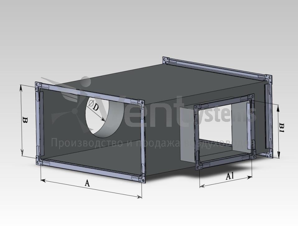 Прямоугольный стальной оцинкованный тройник с фланцами и прямоугольной врезкой