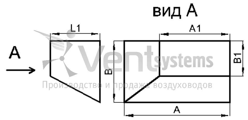 Прямоугольные воздуховоды Фасонные изделия Переход прямоугольное сечение на прямоугольное сечение (угловой правый, тип 2)